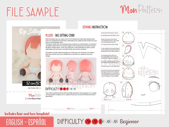 Big Sitting Chibi Human Doll Plush 32 Cm Pdf Sewing Etsy